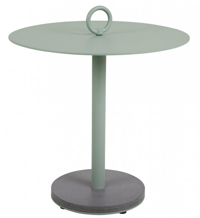 Niobe erbjuder en perfekt avställningsyta bredvid vilstolen, solsängen, loungegruppen eller i trädgården. Niobe tar du enkelt med dig tack vare den dekorativa och stadiga ringen i bordsskivan. Foten i kompositsten gör att bordet står stadigt var du än placerar det.