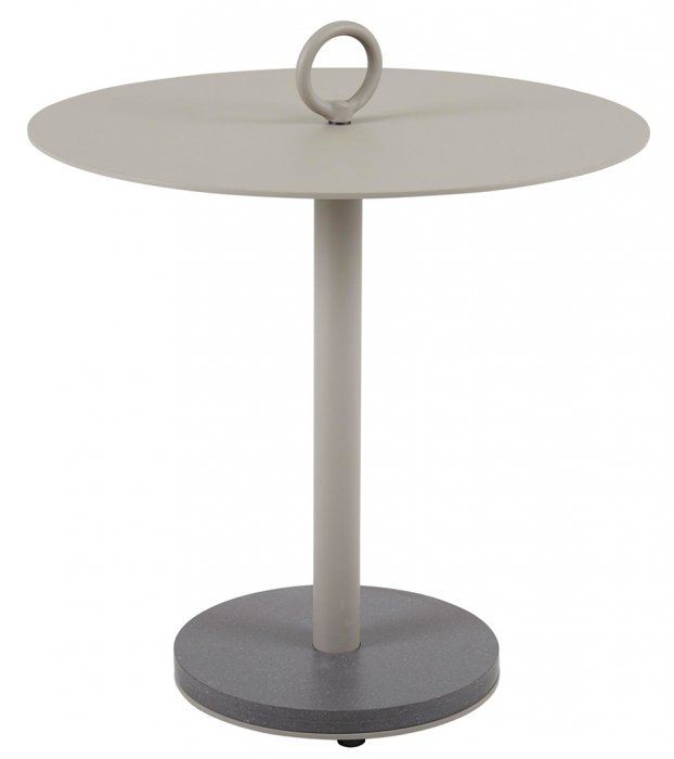 Niobe erbjuder en perfekt avställningsyta bredvid vilstolen, solsängen, loungegruppen eller i trädgården. Niobe tar du enkelt med dig tack vare den dekorativa och stadiga ringen i bordsskivan. Foten i kompositsten gör att bordet står stadigt var du än placerar det.