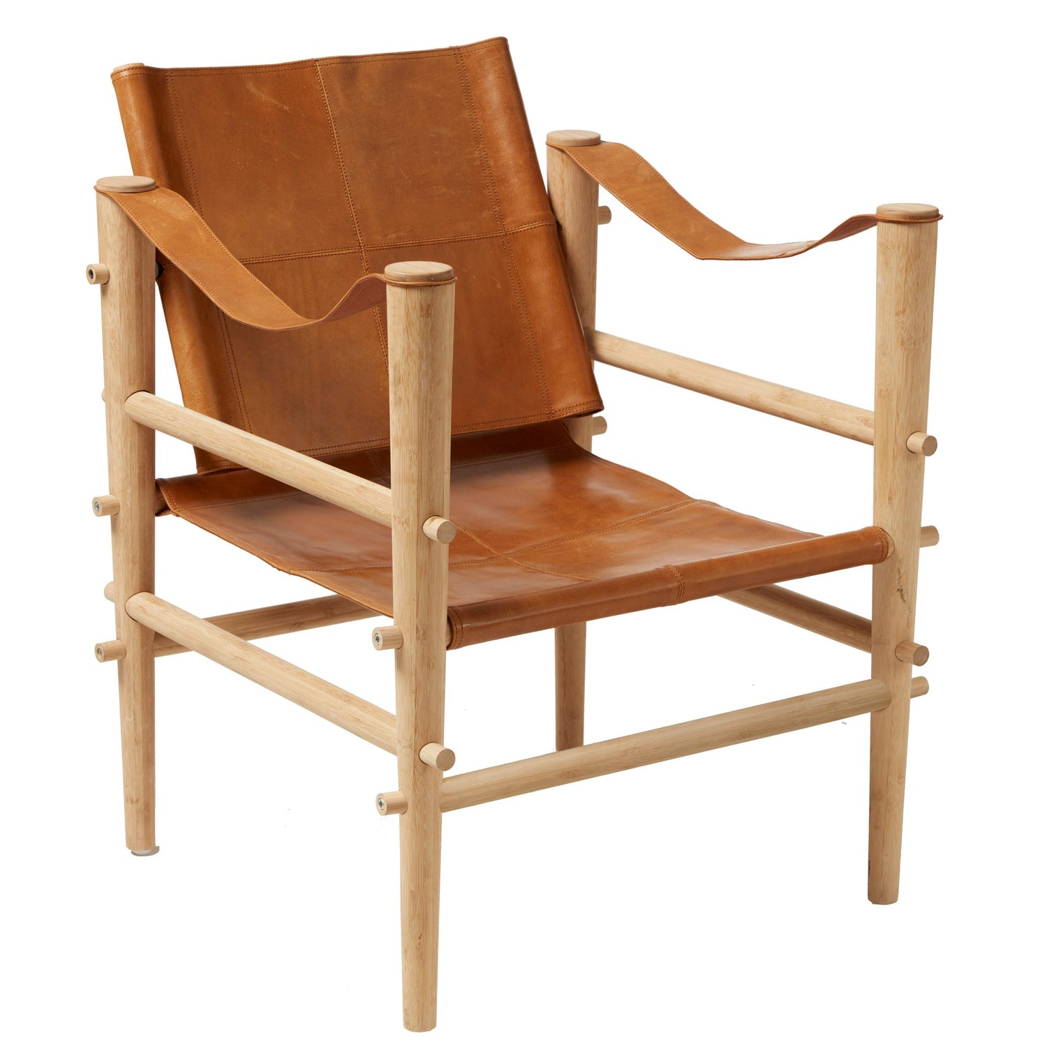 Njut av en kombination av karboniserad bambu och ljusbrunt PU-skinn i en ny tappning av den klassiska safaristolen. Perfekt för moderna och traditionella inredningar.