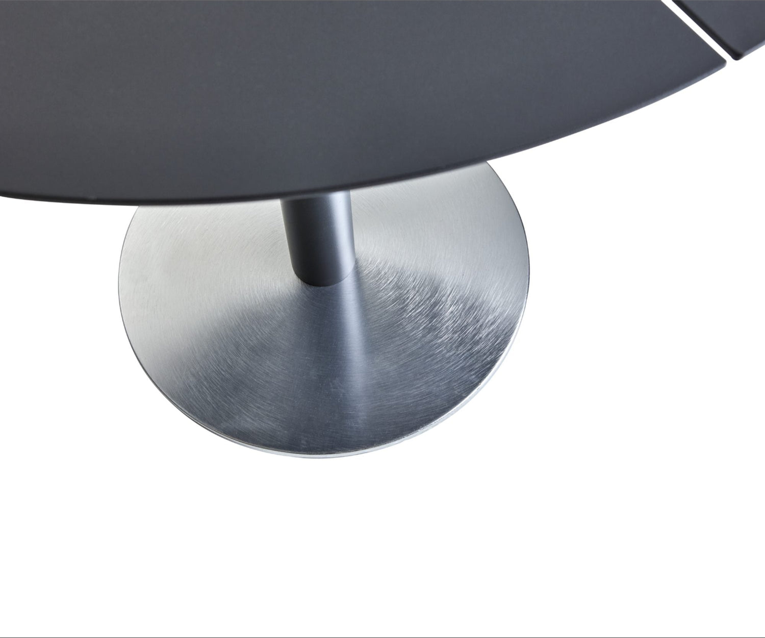 En mindre version av Peace, Peace Bistro, ett mindre bord (Ø80) men med samma goda och genomtänkta design. Det är perfekt i storlek för den mindre ytan och lämpar sig också väl i offentliga miljöer. Den rundade, delade bordsskivan speglar designen av pelaren och ger mer benutrymme. Basplattan är täckt med en borstad anodiserad aluminiumyta, utformad för att tåla slitage från skor.
