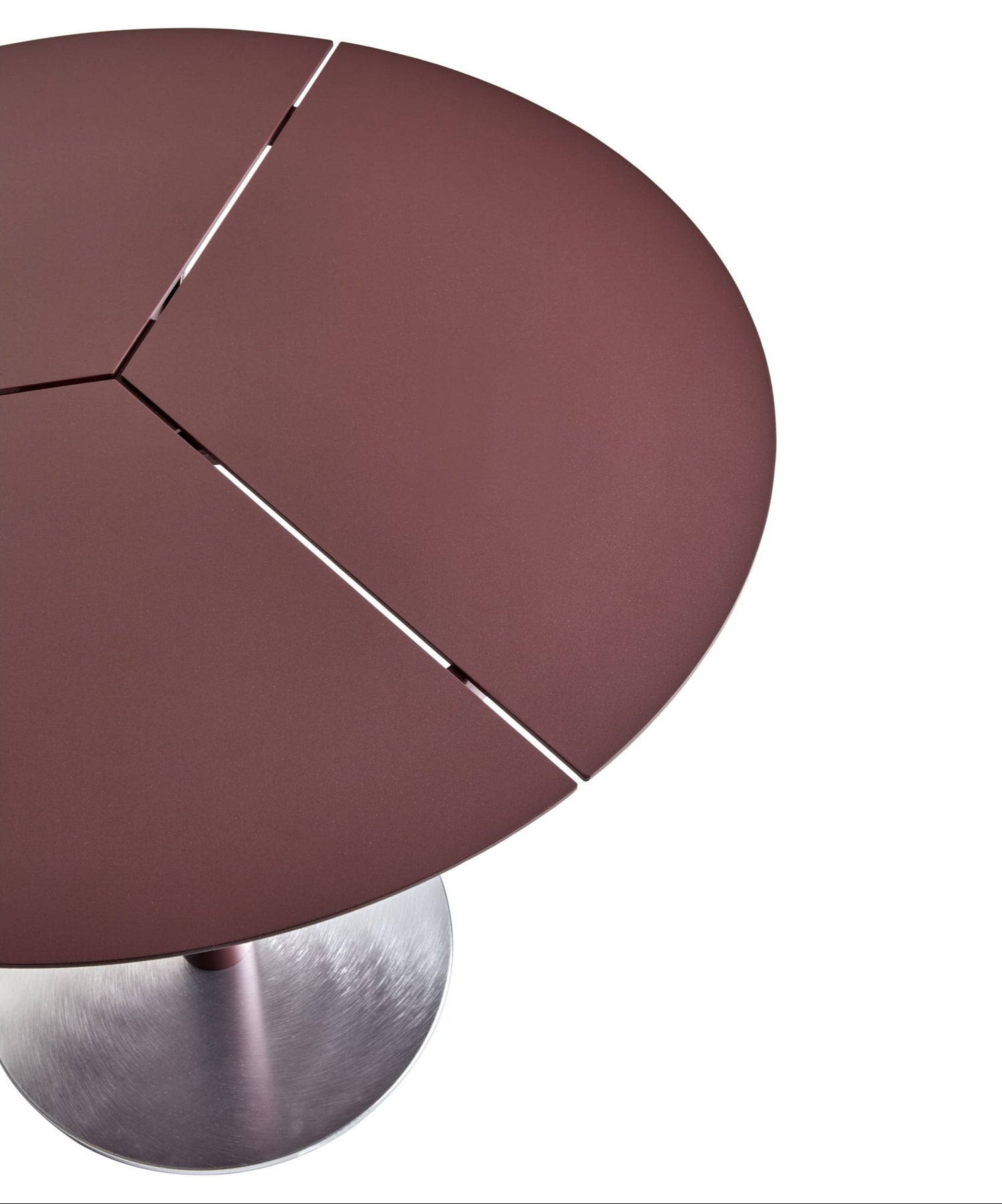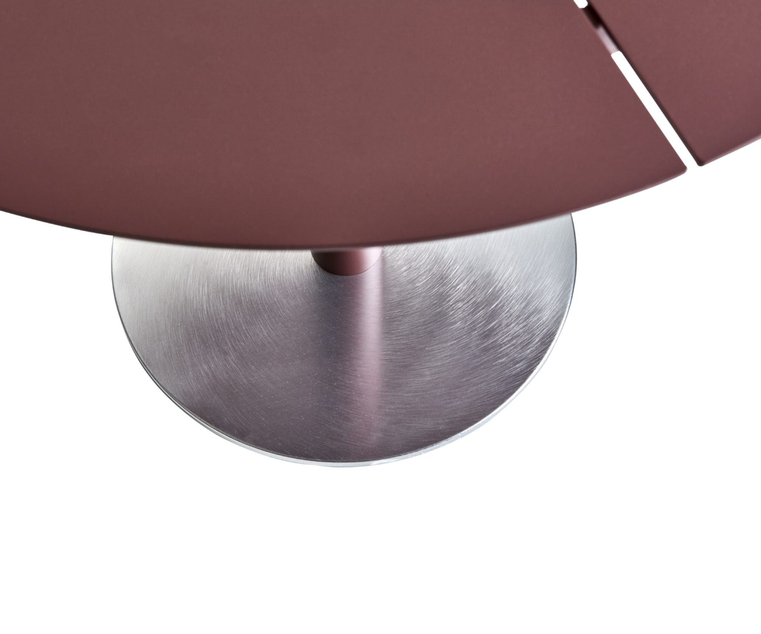 En mindre version av Peace, Peace Bistro, ett mindre bord (Ø80) men med samma goda och genomtänkta design. Det är perfekt i storlek för den mindre ytan och lämpar sig också väl i offentliga miljöer. Den rundade, delade bordsskivan speglar designen av pelaren och ger mer benutrymme. Basplattan är täckt med en borstad anodiserad aluminiumyta, utformad för att tåla slitage från skor.