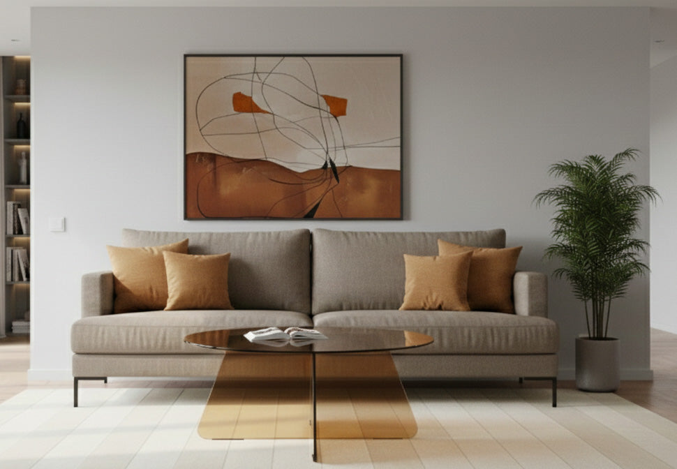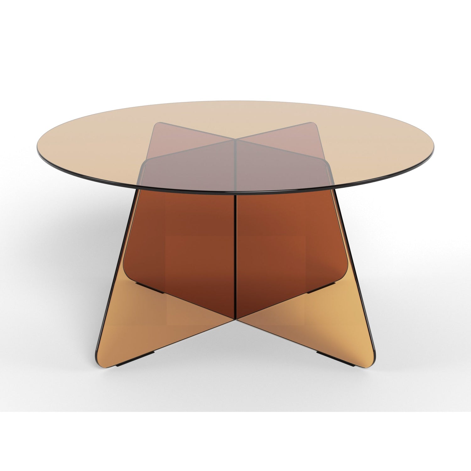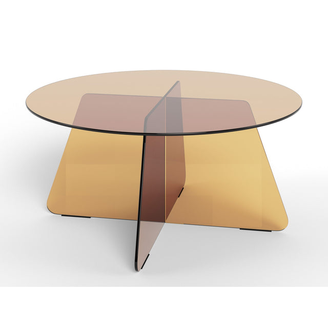 Tillverkad av brunt härdat glas, detta runda soffbords minimalistiska estetik förenar nostalgi med symmetrisk geometri. Toppen och basen kompletterar varandra sömlöst och skapar en visuell lätthet som höjer känslan av rymd i alla moderna vardagsrum.