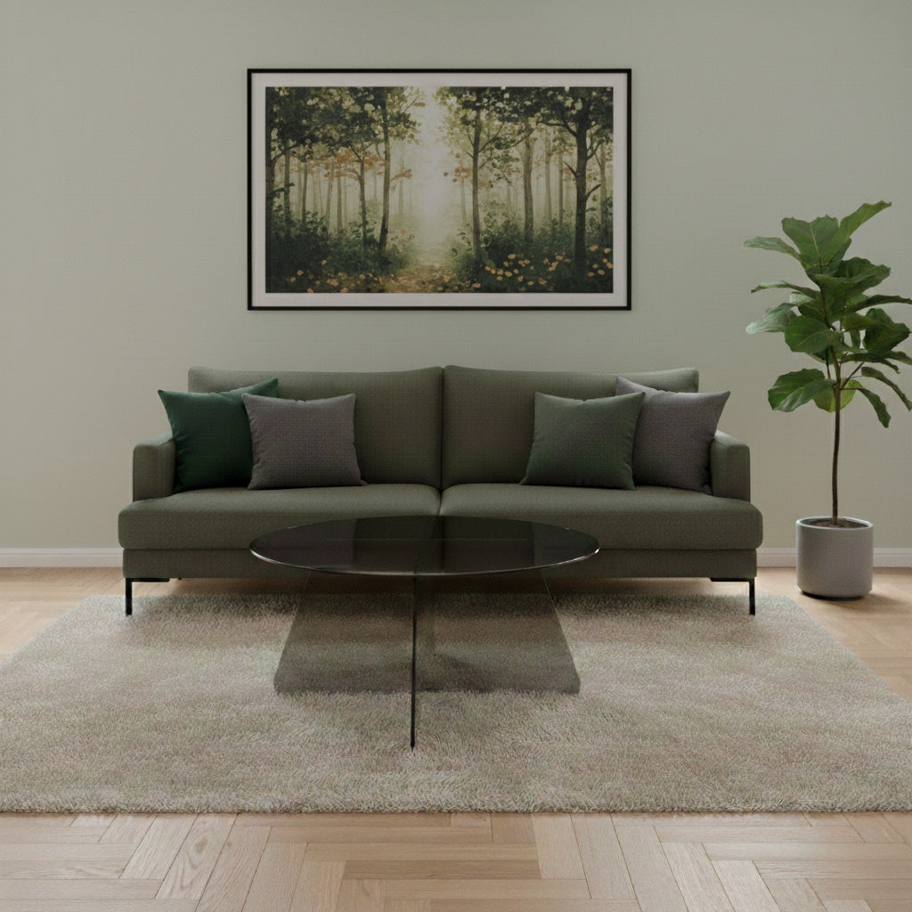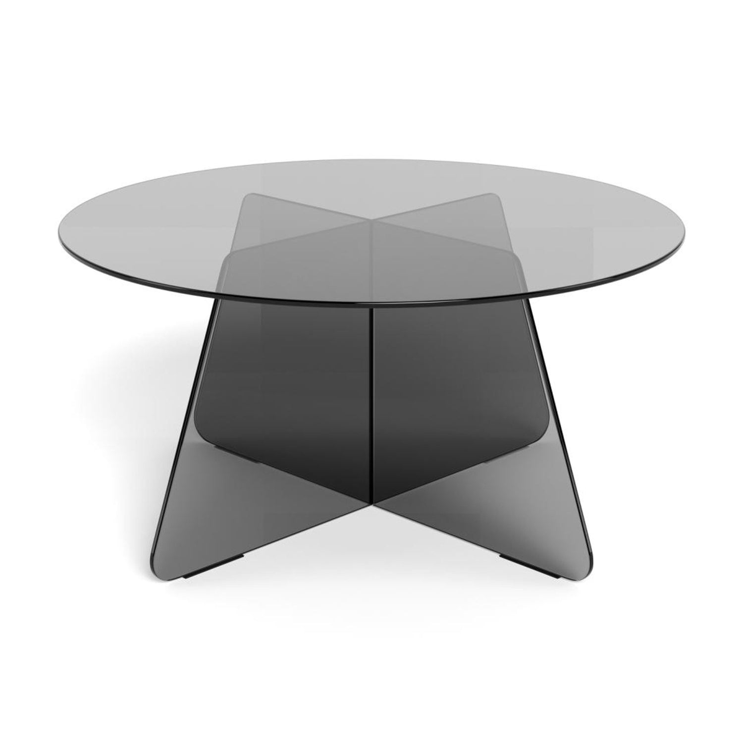Tillverkad av rökt härdat glas, detta runda soffbords minimalistiska estetik förenar nostalgi med symmetrisk geometri. Toppen och basen kompletterar varandra sömlöst och skapar en visuell lätthet som höjer känslan av rymd i alla moderna vardagsrum.