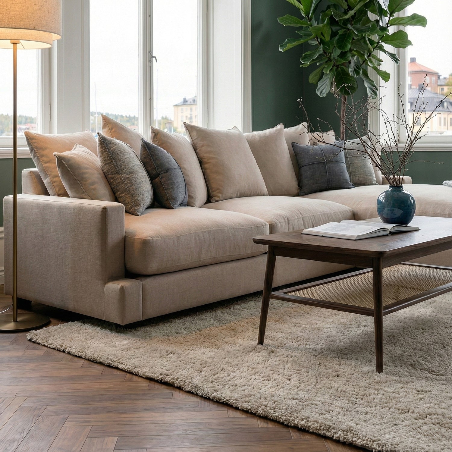 Raquel soffbord i rökt ekfaner kombinerar varm ton, praktisk funktion och skandinavisk enkelhet. Den mjukt avrundade bordsskivan ger gott om plats för vardagens brickor, kaffekoppar och böcker, medan hyllplanet under, med sin vävda detalj, rymmer allt du vill ha nära men inte på bordet. De avsmalnande benen och den mörkare trätonen ger ett ombonat uttryck som passar lika bra i moderna som i klassiska vardagsrum.