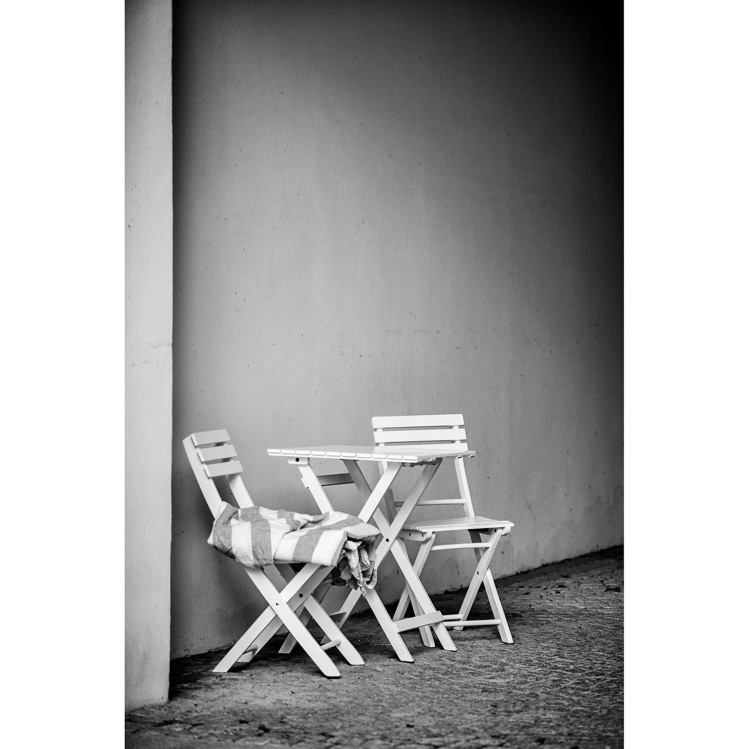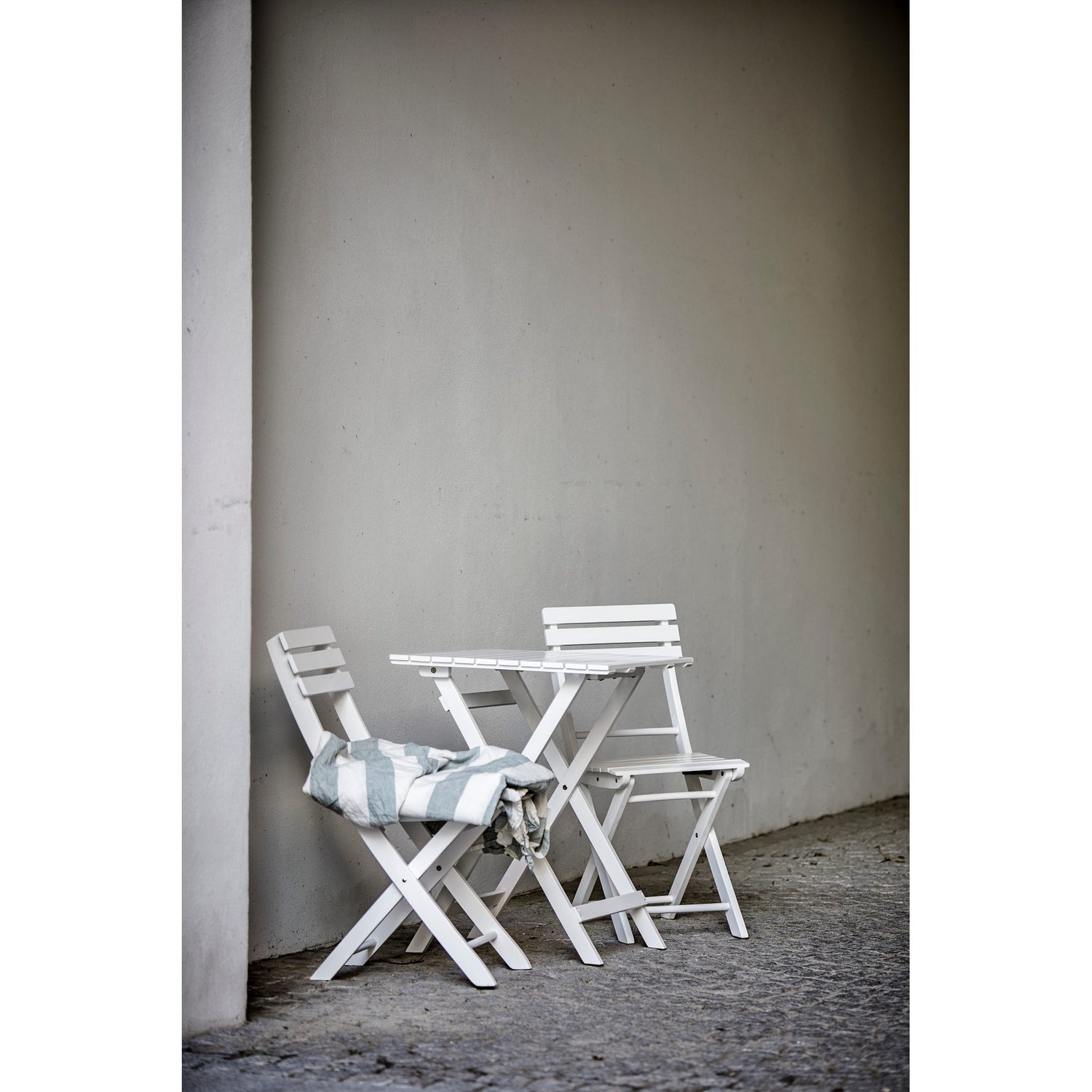 Praktiskt fällbart bord tillverkat i FSC®-certifierad vitlackerad akacia.