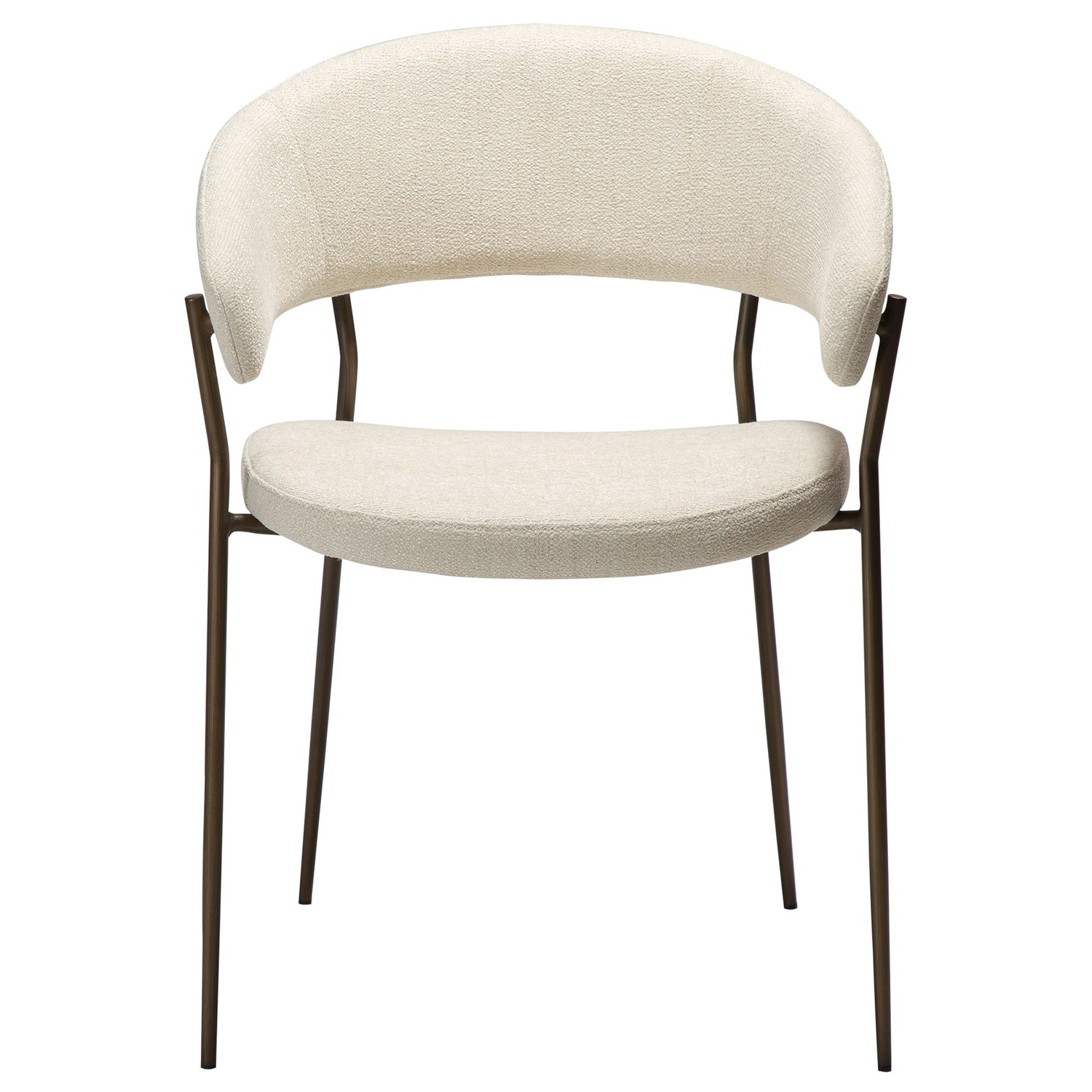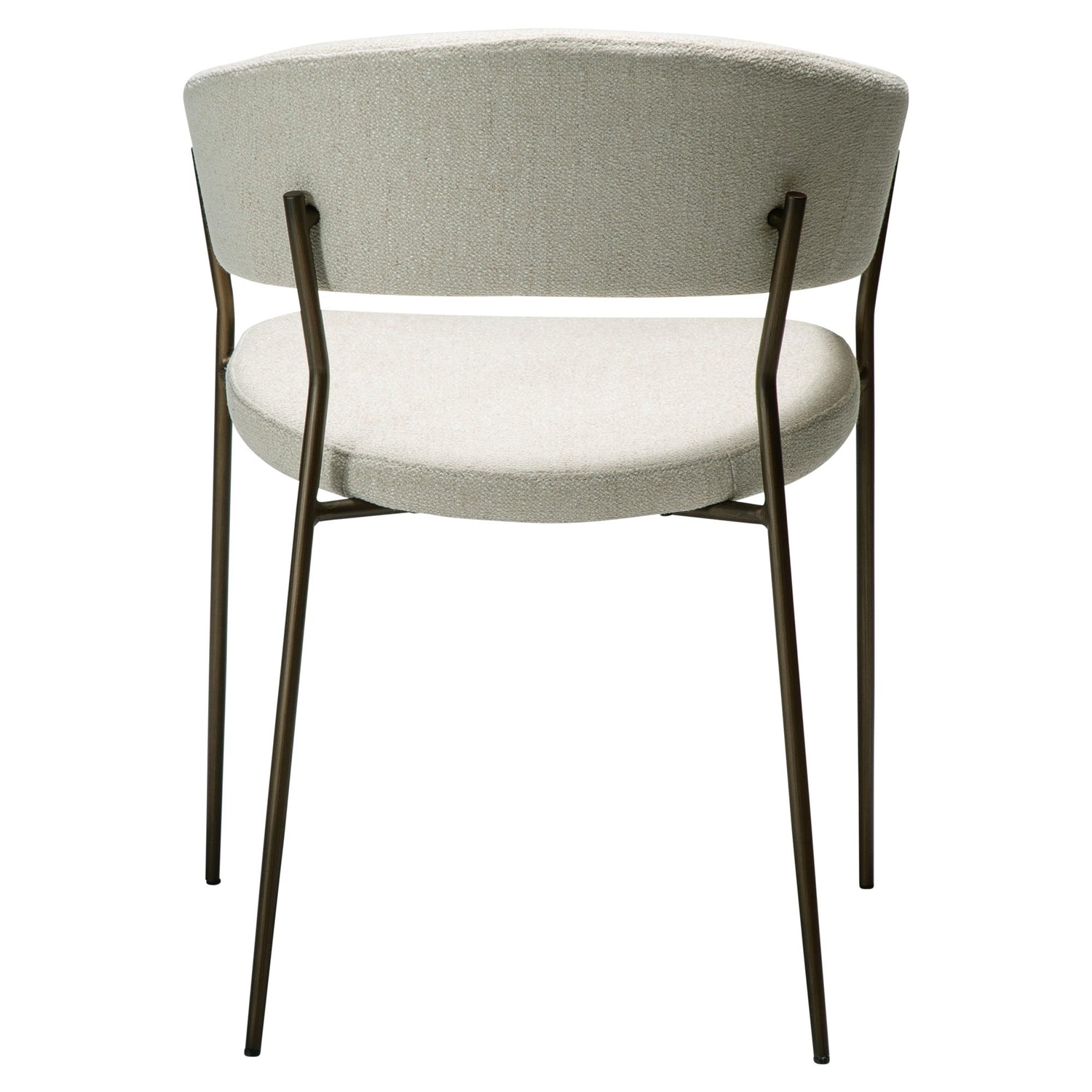 REBOOT fåtölj, enkelt beige bouclétyg med ben i antik mässing