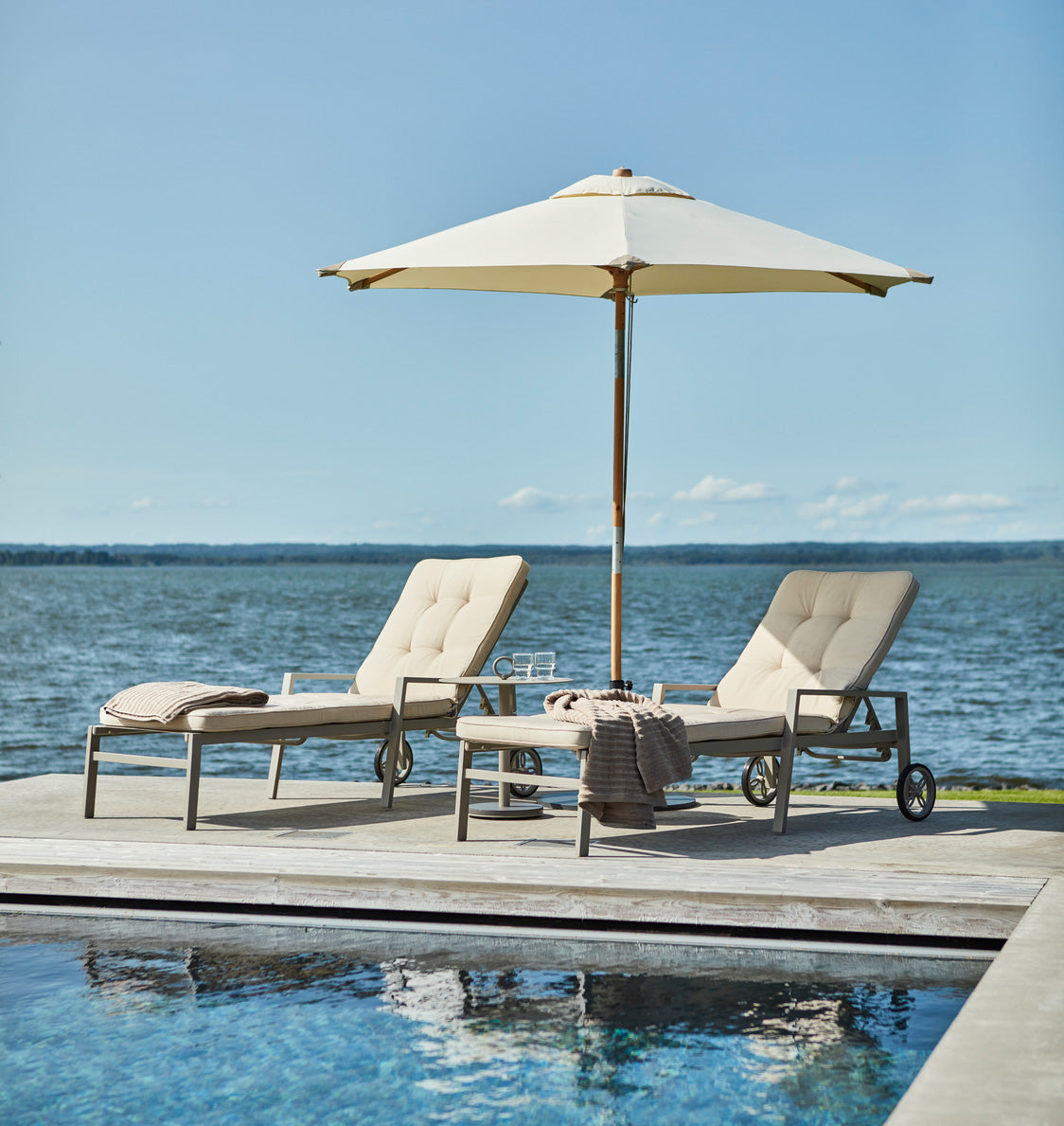 Reggio från Brafab är definitionen av ett tidlöst träparasoll. Med sin nätta profil och naturliga materialval sprider det en harmonisk och klassisk känsla på uteplatsen, balkongen eller i trädgården. Det är ett parasoll för dig som värdesätter traditionell design kombinerat med modern hållbarhet.