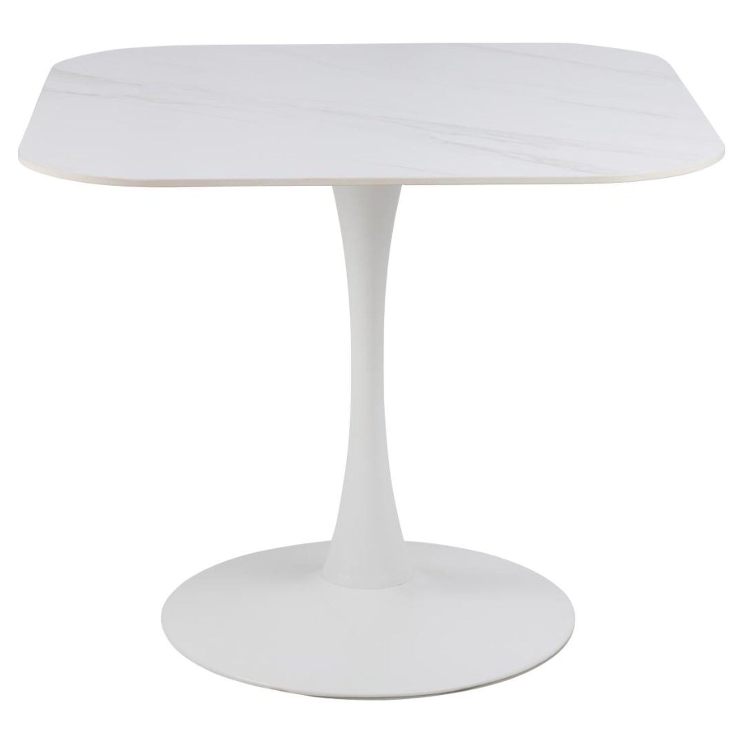 Det här fyrkantiga matbordet med rundade hörn håller samtalet igång. Med en rund bas har det vita bordet ett lätt och svävande utseende. Men det är inte bara stil – den keramiska toppen är också praktisk. Keramik är ett värme- och reptåligt material som kräver lite underhåll. Fantastiskt och praktiskt – precis som det ska vara.