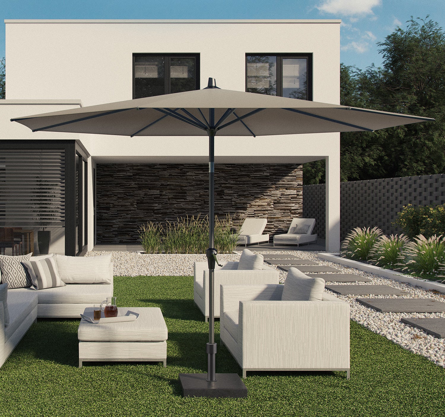 Riva är ett parasoll som kombinerar användarvänlighet, hållbar konstruktion och modern formgivning – ett perfekt val för en bekväm och stilfull utemiljö.