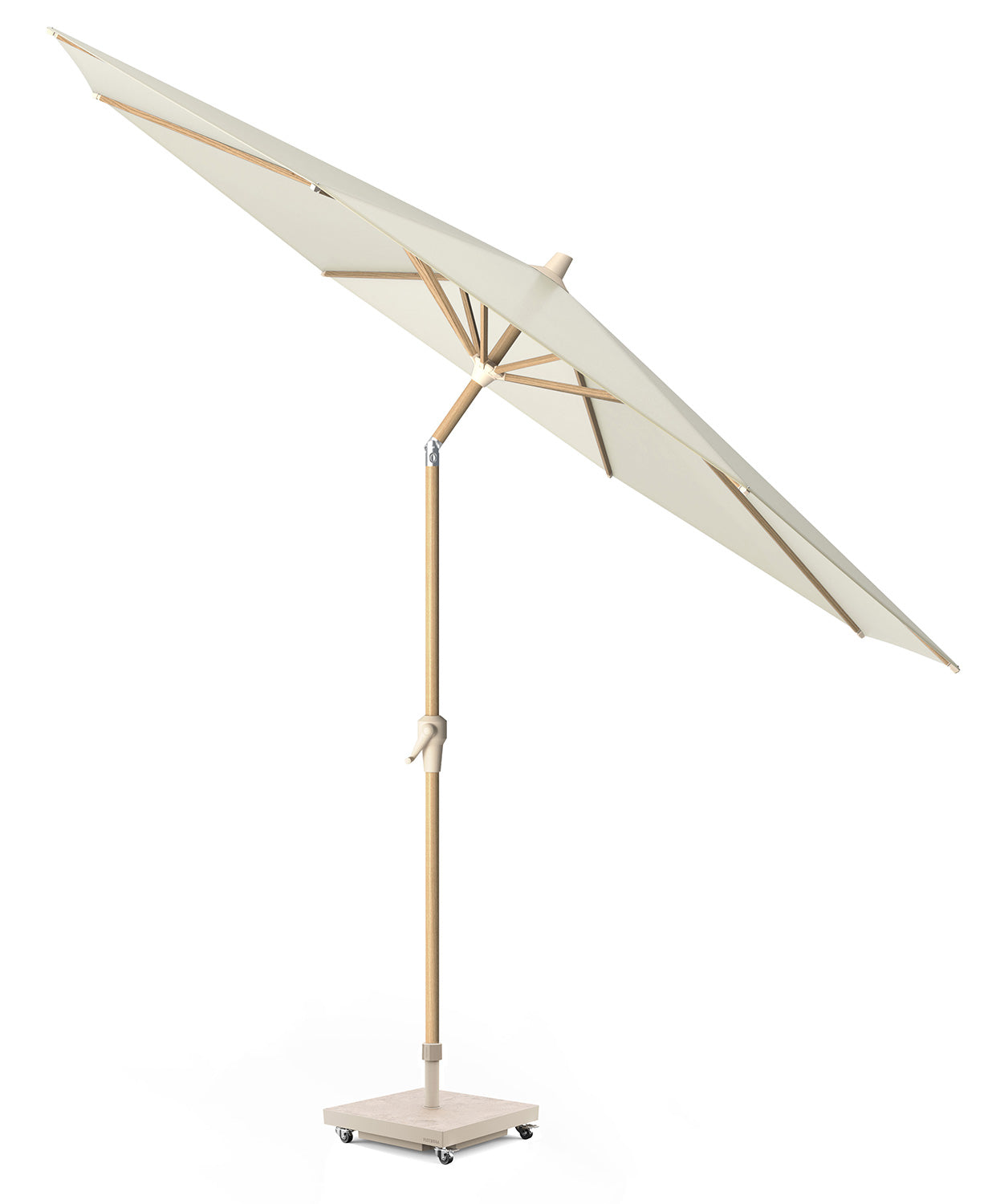 Riva är ett parasoll som kombinerar användarvänlighet, hållbar konstruktion och modern formgivning – ett perfekt val för en bekväm och stilfull utemiljö.