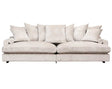 Sittdynorna har en kärna av högelastiskt formskuret kallskum som är svept med silikoniserad fiber och fjäder för djup och mjuk komfort som behåller sin fina form. Ryggdynorna är fyllda med silikoniserad fiber och fjäder och ger ett omslutande stöd. Dynorna är vändbara på denna tygklädda modell. Stommen har fast klädsel och soffan levereras med avtagbara, tvättbara fodral på kuddar och dynor.