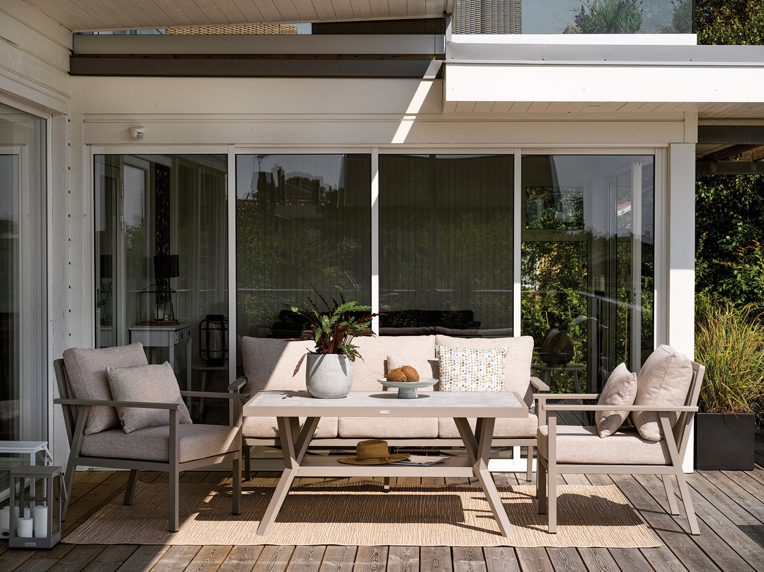 Samvaro är en modern och samtidigt klassisk serie i aluminium som bjuder på en rad kombinationsmöjligheter. De runda och mjuka formerna skapar en trivsam och inbjudande känsla i Samvaro där detaljerna står i fokus. Bekväma dynor i olefintyg med en vattenavvisande beläggning. Armstöden på Samvaro är lätt rundade och matstolen har en formad och extra bekväm ryggdyna. Samvaro blandar helt enkelt klassisk design med moderna och praktiska material. Samvaro har även fokuserat mycket på att få till en riktigt bra sittkomfort men bra ergonomi och känsla.