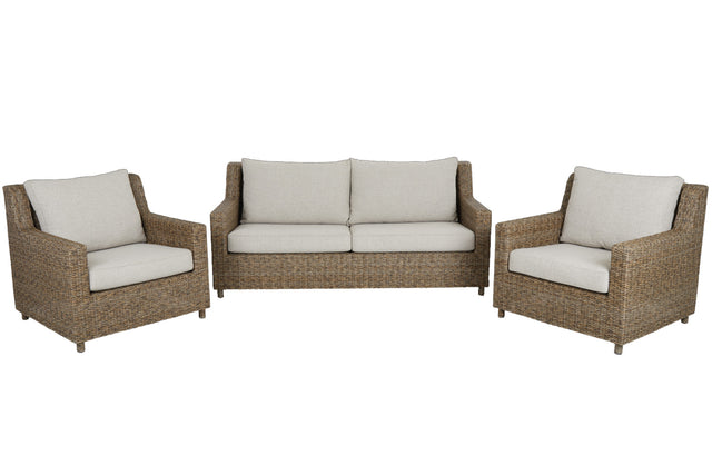 Sandkorn är en elegant 2,5-sits soffa från Brafab i äkta New England stil. Den är tillverkad i tjock rund konstrotting i rustik finish med en stomme i aluminium. Sandkorn är den perfekta soffan för dig som vill ha en exklusiv utomhussoffa i naturtrogen konstrotting. Kuddarna är tillverkat i slitstark olefintyg som har en vattenavstötande yta. De sköna dynorna och höga ryggen ger en härlig sittkomfort och gör Sandkorn till en perfekt loungegrupp för varma sommardagar och kvällar.