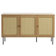 Denna skänk är tillverkad av hållbart trä och har dörrar med polyrotting och slanka svarta metallben. Dess skandinaviska design kombinerar naturliga material med funktionalitet, vilket gör den till ett perfekt tillskott i vilket hem som helst.