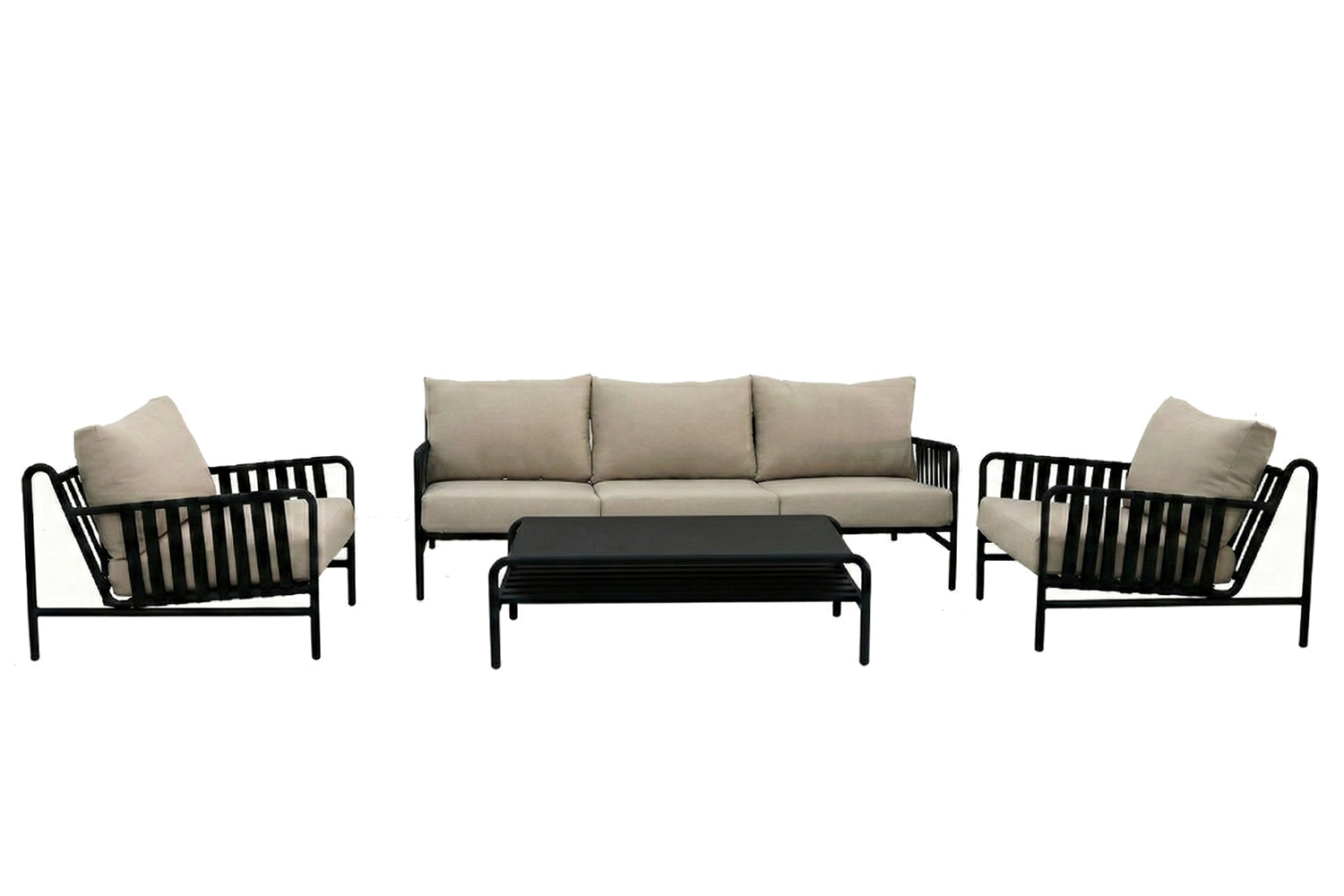Siena soffgrupp i svart är ett elegant och genomtänkt val för dig som vill skapa en stilren och bekväm loungemiljö utomhus. Med sin moderna formgivning och balanserade materialval passar soffgruppen lika bra på terrassen som på altanen eller i trädgården.