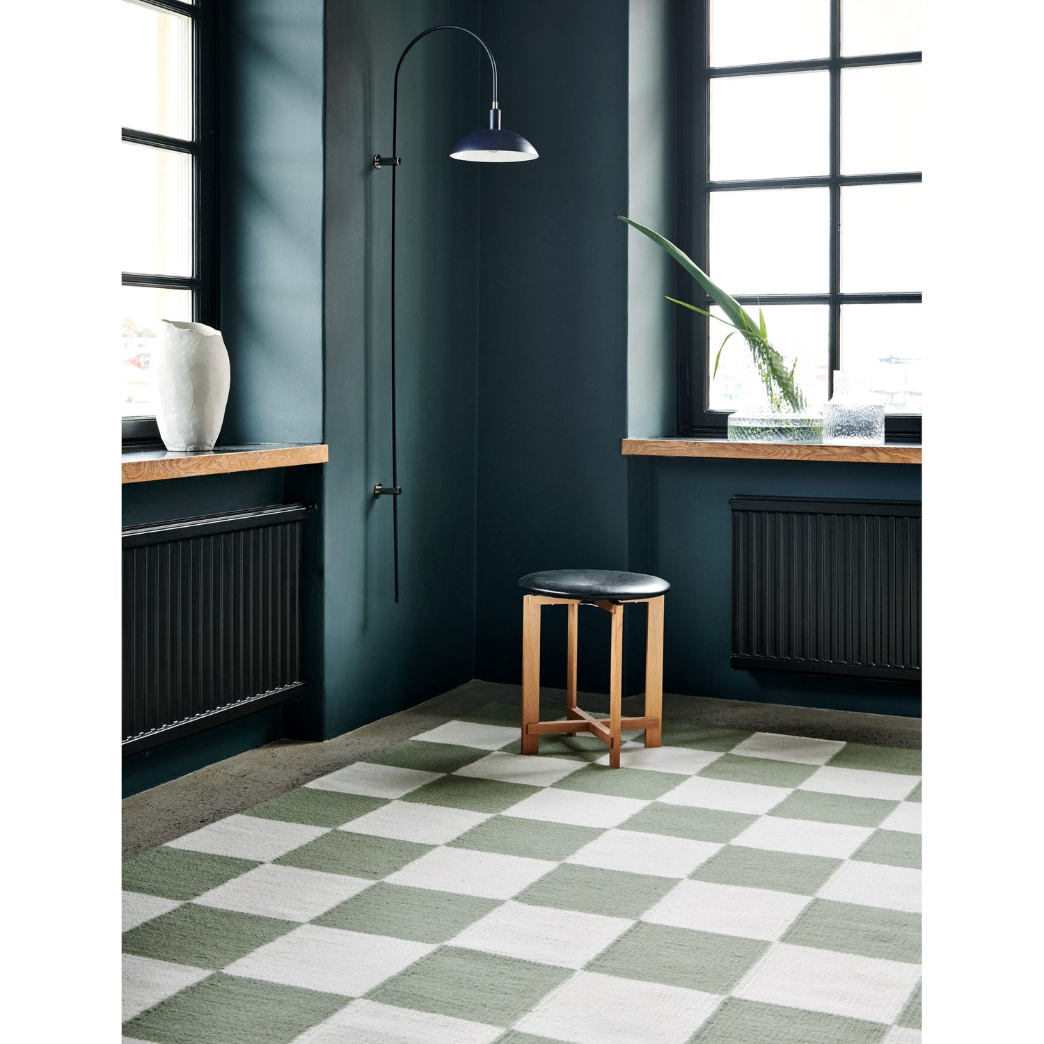 Klassiskt rutig ullmatta i grönt och vitt