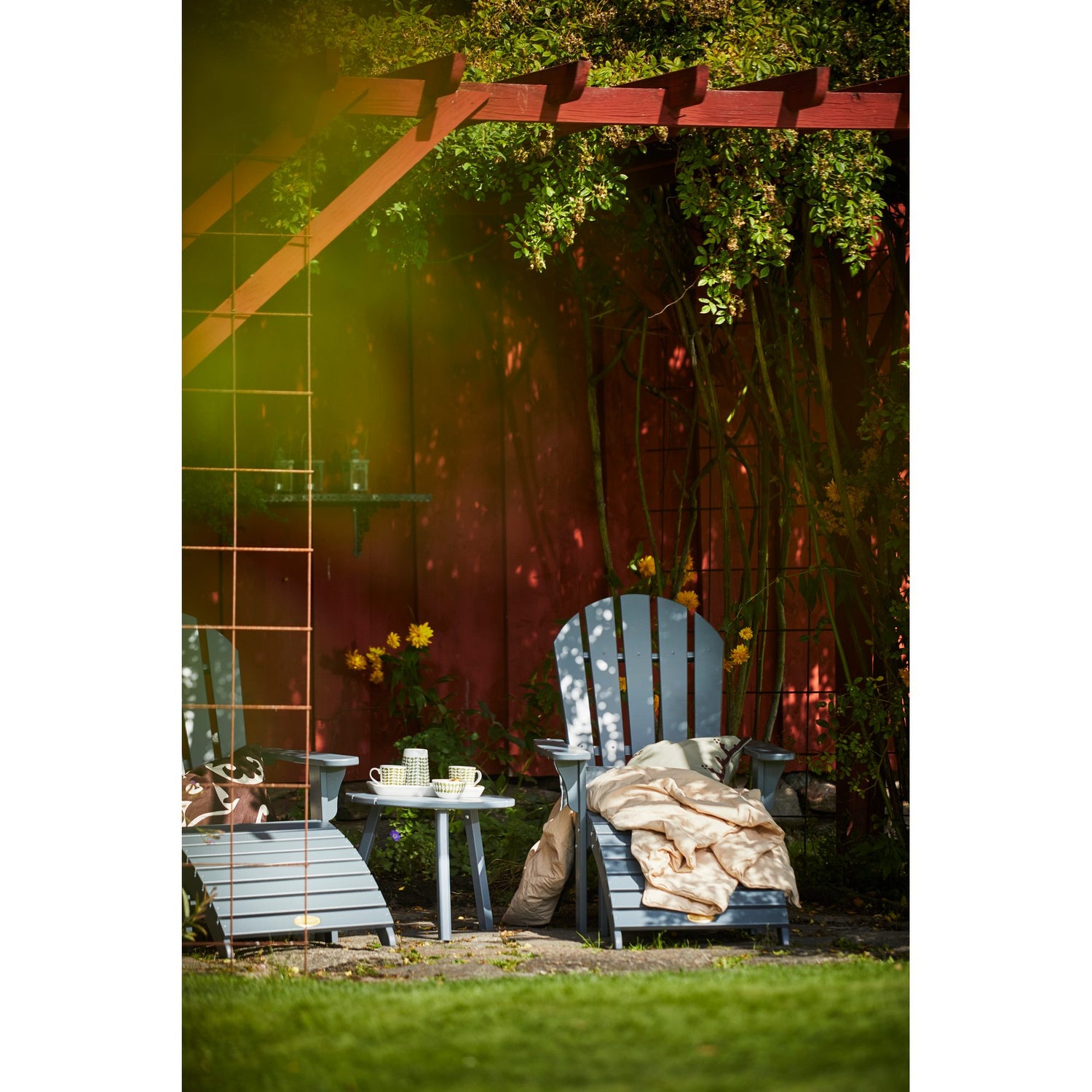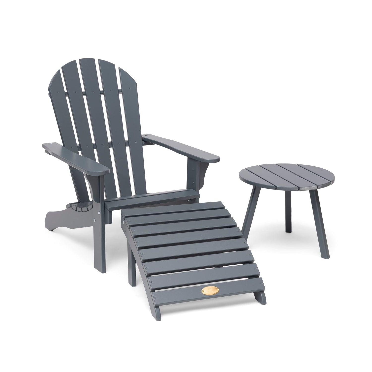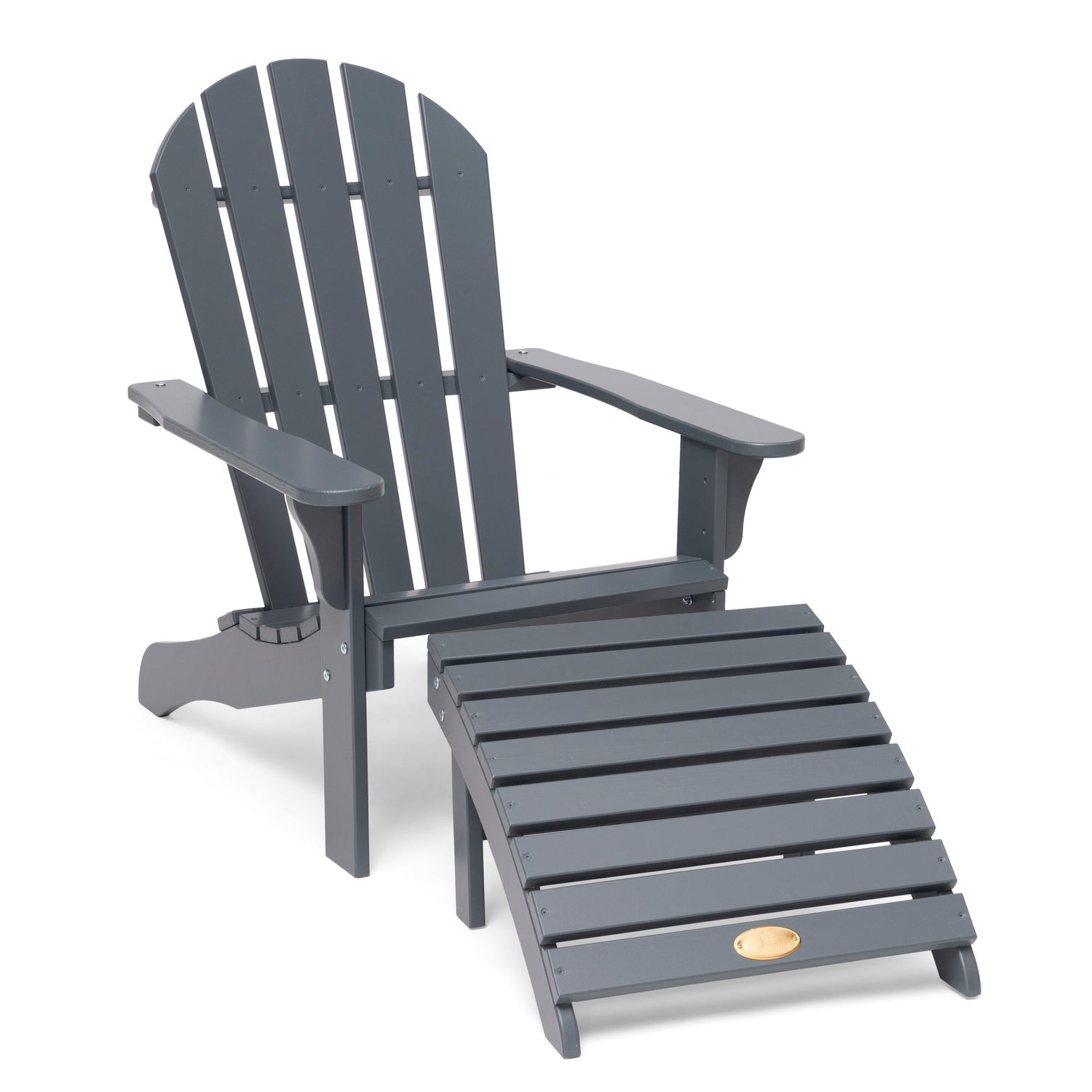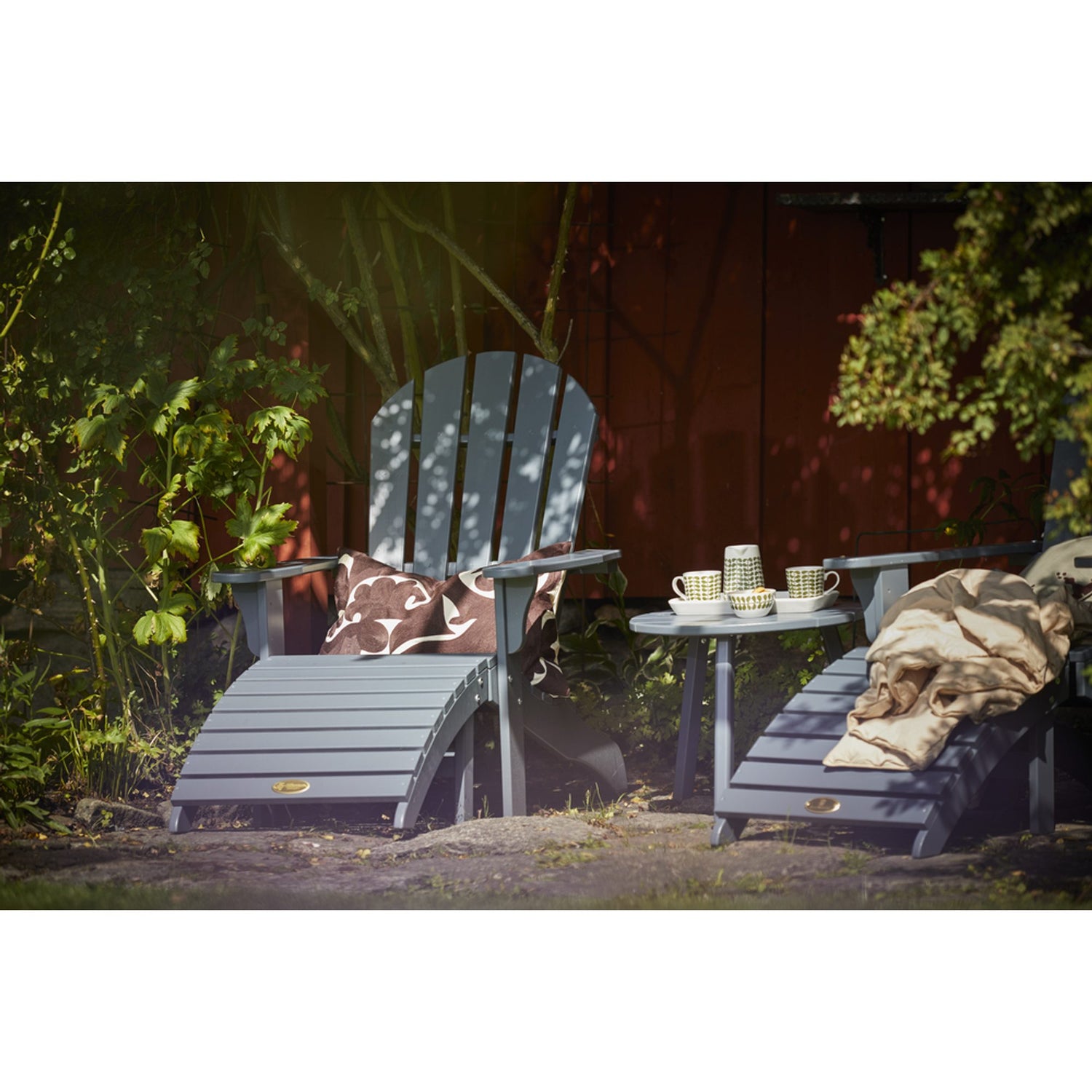 Adirondack Mountains, norr om New York fick för över 100 år sedan ge namn åt en speciell typ av vilstol. The Adirondack Chair har sedan dess skapats i otaliga versioner, material och färger. Vår version heter Tennessee och är gjord i stålgrå FSC®-certifierad furu. Fotpall ingår.