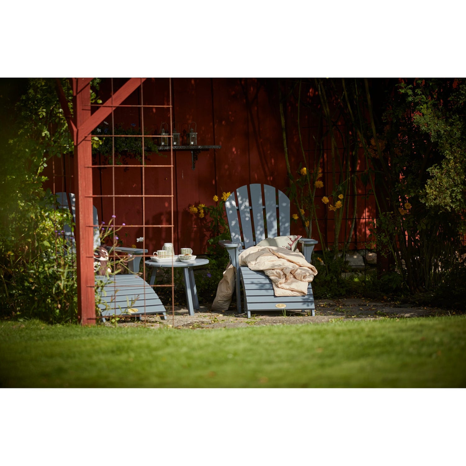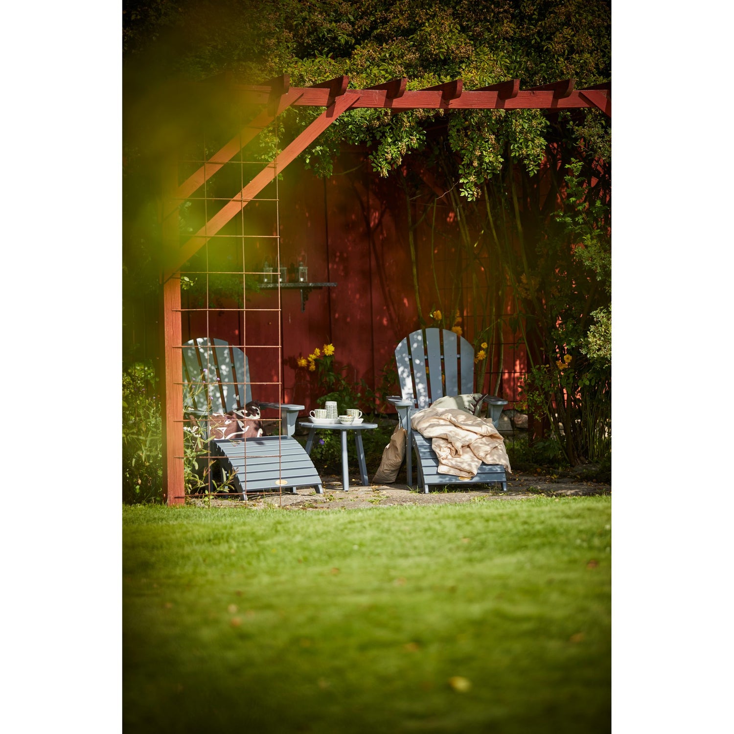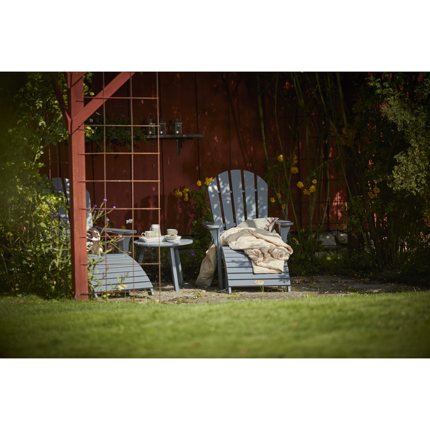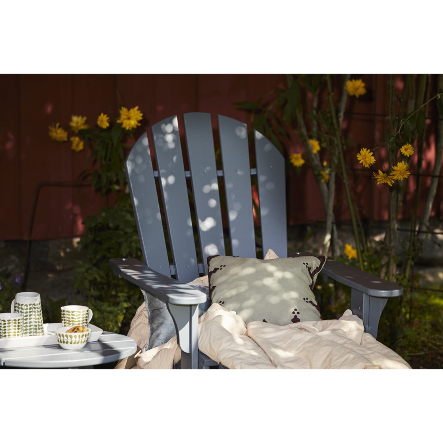 Adirondack Mountains, norr om New York fick för över 100 år sedan ge namn åt en speciell typ av vilstol. The Adirondack Chair har sedan dess skapats i otaliga versioner, material och färger. Vår version heter Tennessee och är gjord i stålgrå FSC®-certifierad furu. Fotpall ingår.