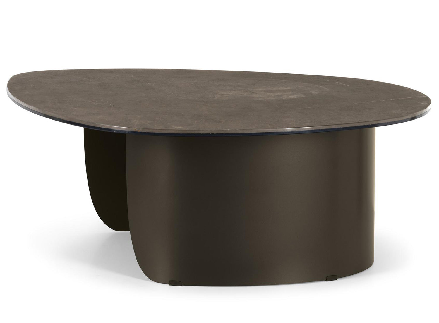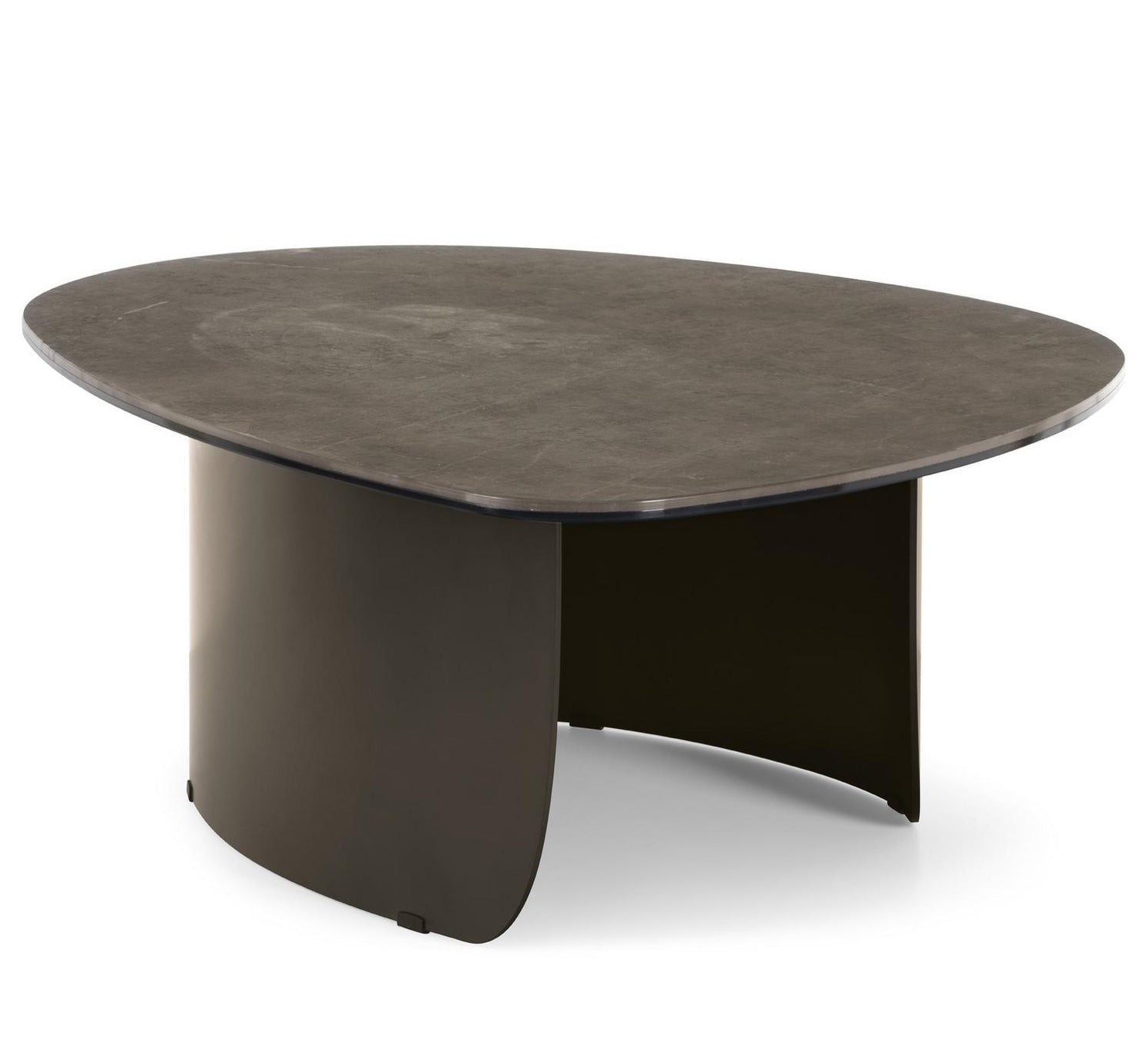 Underredet är skulpturalt utformat i metall med mjuka, svepande former som både ger stabilitet och ett lätt, modernt uttryck. Den harmoniska balansen mellan bordsskiva och underrede gör att bordet blir en naturlig mittpunkt i vardagsrummet.