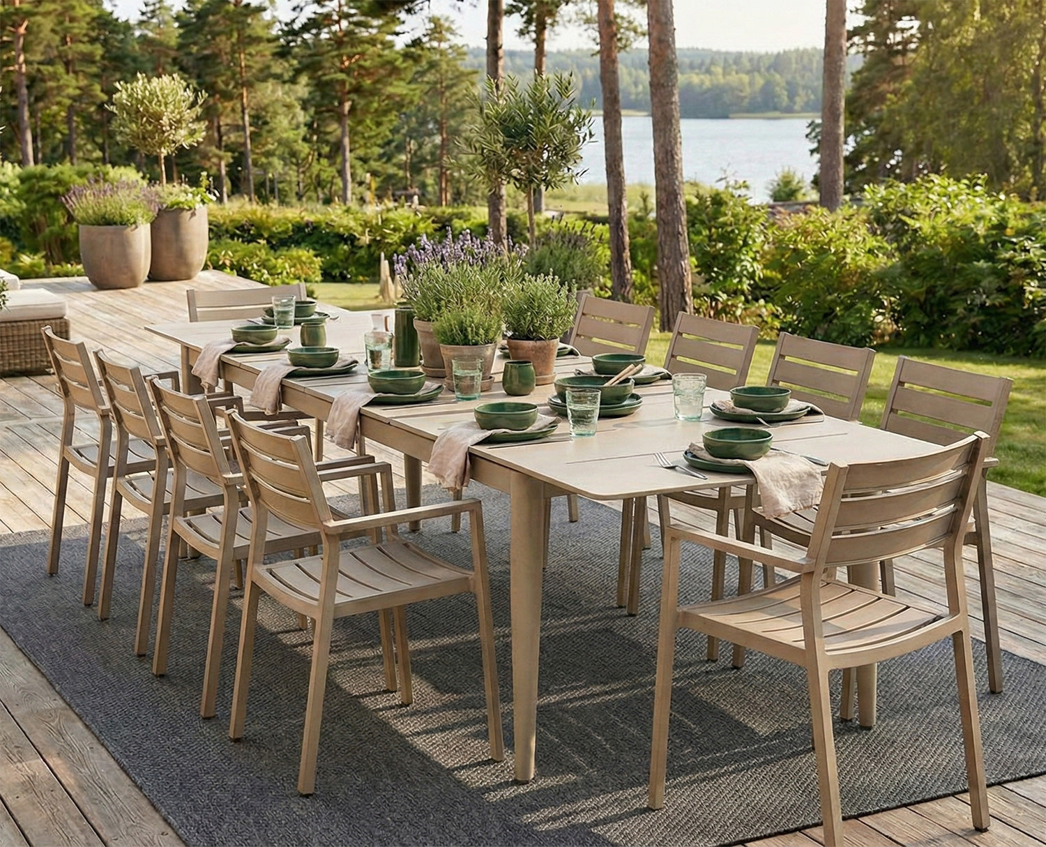 Den stapelbara designen gör stolen enkel att förvara när den inte används, vilket är särskilt praktiskt för dig som vill kunna anpassa möbleringen efter säsong eller antal gäster. Det gör Varese till ett flexibelt val för både större och mindre uteplatser.