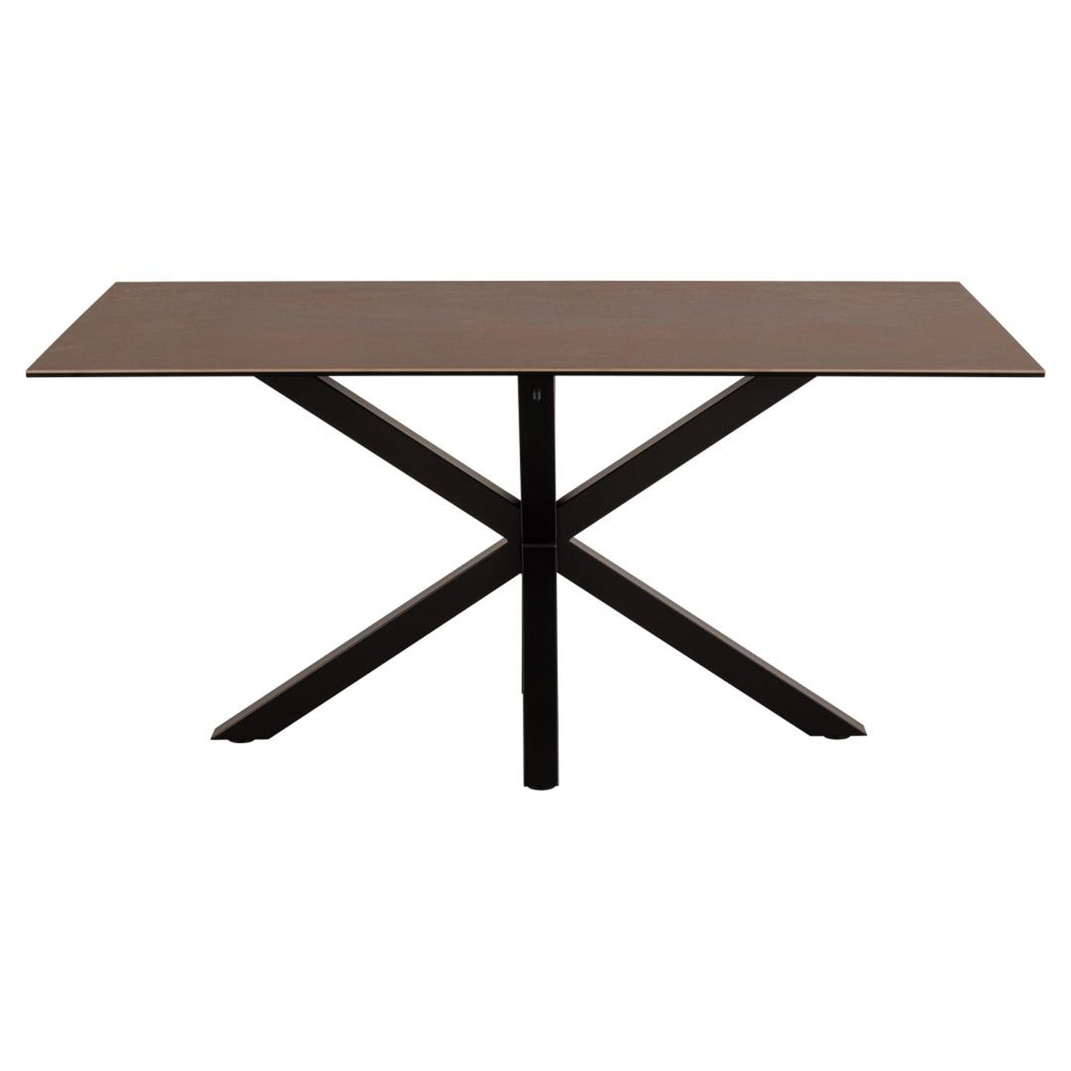 Verdun matbord kombinerar modern design med djärv karaktär och blir en naturlig samlingspunkt i hemmet. Den värme- och reptåliga keramiska bordsskivan har ett levande rostbrunt utseende som ger bordet en varm och inbjudande känsla.
